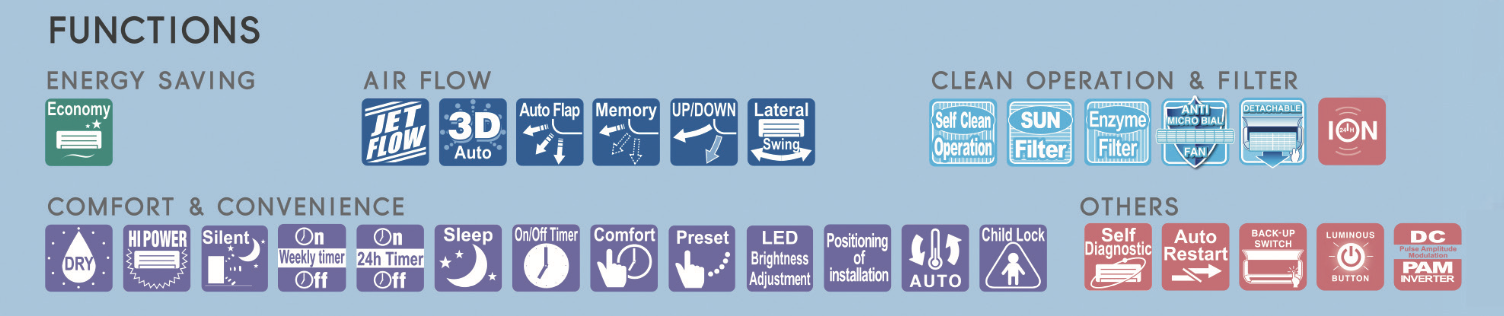 The ‘new’ Premium Rocket series Cooling capacity range from 2.5kw to 7.1kw, YYS series wall mounted type comes with all build in Wifi that allows control and management of your air con system from your mobile phone. ideal for room, dinning and living room application. Connectible to outdoor SCM30YS-W or SCM40YS-W